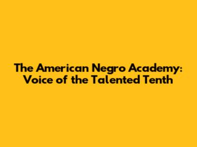 American Negro Academy: Voice Of The Talented Tenth