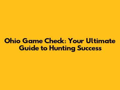 Ohio Game Check: Your Ultimate Guide To Hunting Success