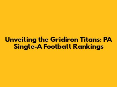 Unveiling The Gridiron Titans: PA Single-A Football Rankings